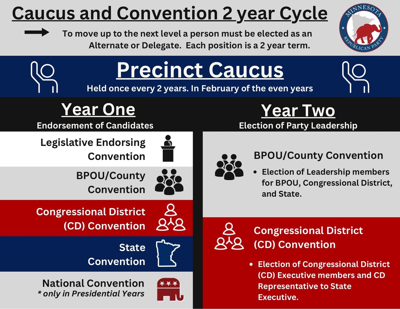 Caucus is the beginning of the grassroots system Minnesota uses to determine who will be on November's ballot. You gather in your local area with like minded individuals and vote on delegates to represent your area. Shortly after the Caucus, the endorsing conventions start. First for your local State legislators and then moving up to the Federal and State level candidates. The Caucus and Convention system empowers you as a delegate to do your research, vet the candidates, and determine who will best fit the district come the general election in November.