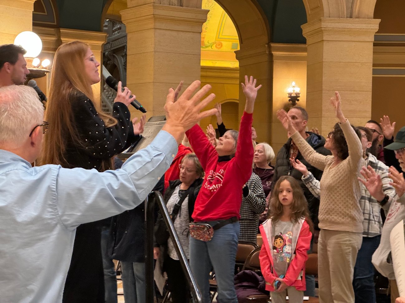 The atmosphere inside the Capitol Rotunda became charged with the joyful presence of over 120 people gathering to sing praises, express thanksgiving, and pray - pray - pray. One of the most exciting things was the noticeable presence of God. Some folks sensed angels. Everyone knew that the Capitol Rotunda was Holy Ground for the time we were there.