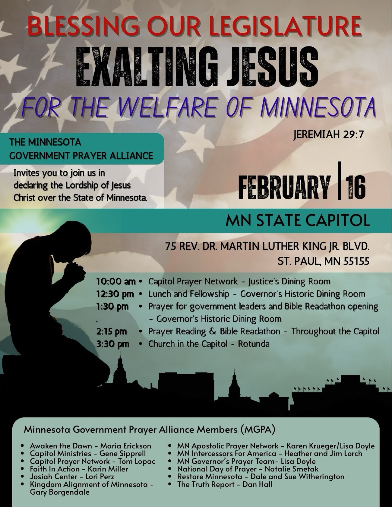- February 16: Launching the 2026 MN Legislative Session with Prayer, Bible Reading, and Church in the Capitol
