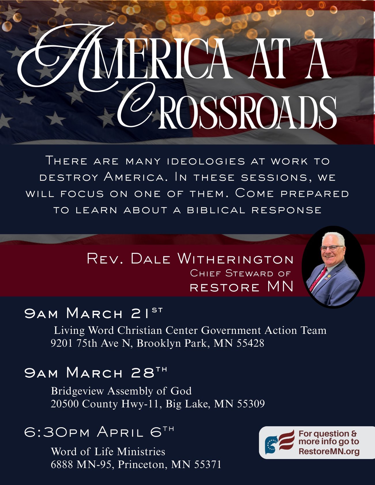 This America At A Crossroads presentation by Rev. Dale Witherington has been well attended and very well received.